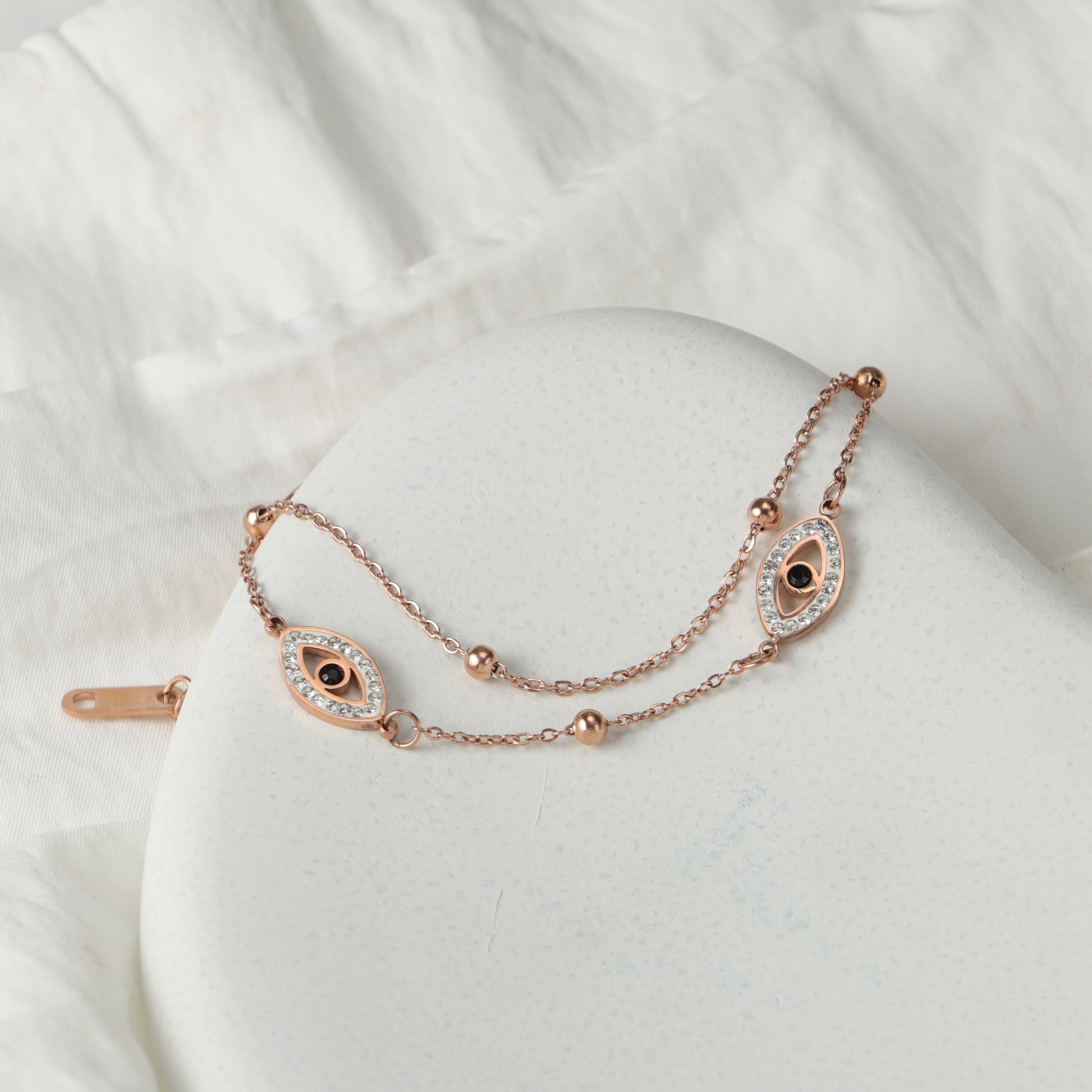 Expertly crafted with a high quality anti-tarnish finish, our Evil Eye Bracelet features an elegant and classy design that exudes sophistication. This bracelet adds a chic touch to any outfit. Enjoy the best quality finishing and elevate your style with this stunning piece.